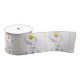 Eine spielerische Illustration zeigt eine schlichte Linie, in der ein kleines Mädchen mit rosigen Wangen gezeichnet wird, mit einer winzigen Blume und einer weißen Disy auf dem Kopf