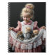 Kleines Mädchen mit Kätzchen in ihrer Schürze Notizblock