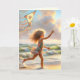 Kleines Mädchen mit Kitesurf am Strand Karte