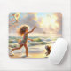 Kleines Mädchen mit Kitesurf am Strand Mousepad