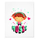 Niedliches kleines Mädchen mit Musiknoten, Herz und Text MUSIC