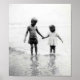 Das ist ein romantisches und schönes kleines Poster von zwei Kindern, die Hände an einem Strand halten. Sehr schön.