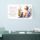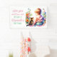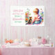 Personalisiertes Babyduschbanner. Niedliches kleines Mädchen sitzt neben ihrem kleinen Kätzchen in einem Fleck von schönen ai Aquarell-Blume. Ein süßes Thema für die Babydusche eines Mädchens. Kleine Mädchen sind purpurfarben. Hübsch rosa und schlauer grüner Text.