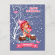 Gute Ferien. Schneeszene mit kleinen Mädchen und kleinen Weihnachtskarten für Kinder / von Kindern mit personalisiertem Namen. Matching Karten und Geschenke in der Weihnachts- und Neujahrskategorie unseres Stores.