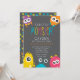 Kleines Monster Erstgeburtstag Party Einladung mit niedlichen Monstern, Kalkboard Hintergrund und farbenfrohen Polka Punkte.