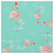Stilvoller Entwurf mit einer retro Touch, welche die festlichen rosa Flamingos tragen rote Weihnachtsmannmützen, Sterne und die Palmen verziert mit Flitter-Set gegen einen Aquahintergrund kennzeichnet. Ein kundengerechter Entwurf, damit Sie mit Ihrem eigenen Text, Bildern und Ideen personifizieren. Ein ursprüngliches digitales Kunstbild geschaffen durch schrulliges Chic.