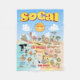 Helle und charmante Szene - eine Landkarte mit Cartoon aus Südkalifornien - feine Cartoonfiguren genießen die warme SoCal-Sonne - Los Angeles, San Diego, Anaheim, Santa Barbara, Riverside, Palm Springs und El Centro sind vertreten - Anza Borrego Desert Staat Park und Joshua Tree National Park sind ebenso enthalten wie die Grenzstädte von Tijuana, Tecate und Calexico in Mexiko.