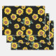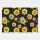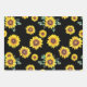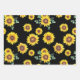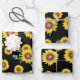 Kleines Sonnenblumenmuster auf schwarzem Hintergru Geschenkpapier Set