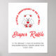 Ein rot-weißer Teddy trägt ein Baby Dusche Windel Design verlosung Design. Der Text ist anpassbar. Sie können den Schriftart, die Farbe des Schriftartes, die Größe des Schriftartes, den Abstand der Buchstaben, den Zeilenabstand, die Farbe der Teddybärengrafik ändern und den Text mithilfe des Entwurfstools neu positionieren.