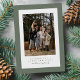 Die weihnachtliche Weihnachtskarte zeigt ein Foto auf der Vorderseite, umgeben von einem Salbei-grünen Tweed-Rahmen. Der festliche Stoff verleiht ihm ein winterliches Ambiente und der Typ erlaubt es Ihnen, Ihre eigene personalisierte Botschaft zu kreieren. Die Rückseite hat ein passendes Tweed-Muster und Platz für ein zusätzliches Foto. Dieses Design ist perfekt durchdacht und einfach.