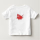 Ein Weiß, ein T-Stück des shortsleeved Kleinkindes mit einer niedlichen roten Dracherückseite und eine Front, von einer handgemalten Illustration durch Judy Adamson.