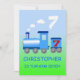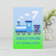 Ein kleiner Zug, der die Zahl sieben herauspufft. Eine Einladung zu einer Geburtstagsparty, die Sie anpassen können.