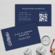 Eine minimale Visitenkarte, die für einen zugelassenen Klempner oder Installateur geeignet ist, der in Wohn- oder kommerziellen Arbeiten tätig ist. Das moderne und stilvolle Design besticht durch ein grau-weißes Wasserpfeifenlogo auf der Vorderseite mit marinischem Hintergrund und Platz für Ihren Firmennamen und Ihre Tagline. Auf der Rückseite Ihr Name, Kontaktinformationen und ein QR-Code. Die Kunden können sich einfach auf Ihre Webseite begeben, um Ihre Dienstleistungen und Verfügbarkeit zu sehen und einen Termin zu vereinbaren.