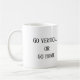 In dieser Tasse finden Sie auf der einen Seite ein Kunstwerk eines Bergsteigers und auf der anderen das Motto "gehen Sie vertikal oder gehen Sie Zuhause".
