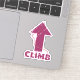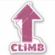 Eine Typografie, die das Wort klettern und ein Pfeilgemälde nach oben zeigt. Das Seil weht zwischen den Buchstaben des Wortes Klettern. Für alle, die Lieben Sport oder Klettern.