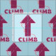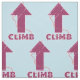 Eine Typografie, die das Wort klettern und ein Pfeilgemälde nach oben zeigt. Das Seil weht zwischen den Buchstaben des Wortes Klettern. Für alle, die Lieben Sport oder Klettern.