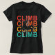 Klettersteig, Mountain Rock Climber Brave Adventure Shirt mit einer Silhouette eines Bergsteigers in der Mitte. Ein sehr cooles Bild, das Sie jederzeit tragen können! Die dunklen Sets der 4 verschiedenen Wortfarben heben die weiße Kontur des Bergsteigers hervor.
