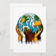 Ein auffallendes Design mit einer schmelzenden Erdkugel, geeint von verschiedenen Händen. Es ist ein Aufruf zum Handeln für die globale Einheit bei der Bekämpfung des Klimawandels und der Förderung der Nachhaltigkeit.