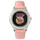 Kinderuhr aus Edelstahl mit rosa Lederarmband