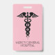 Ein zweifarbiger Rosa Hintergrund und ein eleganter Schriftart sorgen für Professionalität und Leichtigkeit in diesem Abzeichen. Personalisieren Sie Ihre Daten mit Namen, Titel/Referenzen und Abteilungen. Schriftart- und Schriftart-Farben können beliebig geändert werden. Das umgekehrte Design zeigt Krankenhausnamen und Caduceus Symbol. Ideal für medizinische Fachkräfte in Krankenhäusern, Arztpraxen, Laufkliniken und medizinischen Zentren! Design © W.H. Sim, Alle Rechte vorbehalten. Weitere Informationen unter zazzle.com/expressionsoccasions