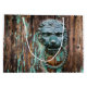 Dieses nah-up Bild zeigt einen faszinierenden Türknopf, der einen Löwenkopf darstellt, mit Holzkorn, dunklen Streifen, Knoten und Splitter türkisfarbener Farbe im Hintergrund, die alle wunderbar zu seinem rustikalen Charme und natürlichen Reiz beitragen. Dieses zeitlose Design erinnert an die Handwerkskunst der alten Zeit und verleiht jedem Dekor eine Touch von Wärme und Charakter. Die verblasste Farbe des Holzes verstärkt diesen Effekt, indem sie ein strukturiertes, mehrschichtiges Aussehen schafft, das die Geschichte und die Geschichten in den Fasern des Holzes hervorruft. Ein solches Design vermittelt ein Gefühl von Natur und Ruhe. Diese Zuhause und der lebendige Akzent verwandeln Ihren Raum mit seinen erdigen Farbtönen und dem authentischen Ambiente in einen ruhigen Rückzugsort, in dem natürliche Elemente und Ästhetik kombiniert werden.