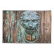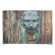 Dieses nah-up Bild zeigt einen faszinierenden Türknopf, der einen Löwenkopf darstellt, mit Holzkorn, dunklen Streifen, Knoten und Splitter türkisfarbener Farbe im Hintergrund, die alle wunderbar zu seinem rustikalen Charme und natürlichen Reiz beitragen. Dieses zeitlose Design erinnert an die Handwerkskunst der alten Zeit und verleiht jedem Dekor eine Touch von Wärme und Charakter. Die verblasste Farbe des Holzes verstärkt diesen Effekt, indem sie ein strukturiertes, mehrschichtiges Aussehen schafft, das die Geschichte und die Geschichten in den Fasern des Holzes hervorruft. Ein solches Design vermittelt ein Gefühl von Natur und Ruhe. Diese Zuhause und der lebendige Akzent verwandeln Ihren Raum mit seinen erdigen Farbtönen und dem authentischen Ambiente in einen ruhigen Rückzugsort, in dem natürliche Elemente und Ästhetik kombiniert werden.