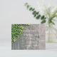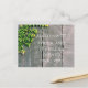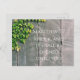 Sie können diese Postkarte mit Ihrem Lieblings-Bibelverse anpassen. Eine positive Nachricht an einen Freund in ihrer Zeit der Not zu senden. Hübsches grünes Blattwerk an einer Holztür mit elegantem weißem Text. Hol dir bald eine gute Karte.