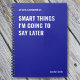 Funny Notebook für Büromitarbeiter, Manager, Arbeitsfreunde oder andere Verwaltungs- und Geschäftsleute. Personalisieren Sie den Namen, der am Ende des Covers "Intelligente Dinge, die ich später sagen werde" gedruckt werden soll. Individuelle Name Notizbücher eignen sich hervorragend für Jubiläen, Feiertage, Bürogeschenke und vieles mehr. Überraschen Sie Ihren Mitarbeiter oder Bekannten mit einem Geschenk, das sie Liebe zu verwenden!