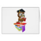 Eine Illustration einer klugen Eule auf einem Stapel Büchern tragende Schauspiele und eine Mörserbrettabsolventkappe lesend.