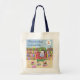 Eine schöne kleine Tasche für kleine Kinder, um ihre eigenen Bücher in der Bibliothek zu tragen. Es hat die Illustration eines süßen Pinguins, der ein Buch auf einem bequemen roten Kissen in einem grünen Stuhl liest und die Worte "Man kann nicht zu viele Bücher ..." © ArianeC Illustrations