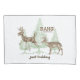 Zwei Rotwild im Wald. Eine machengewehrgeräusche, zum seines Freunds zu erschrecken, der ihm glaubt, waren ein Jäger. Schwarzer Text/Schriftart