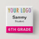Unser quadratischer Namensbutton für Schüler ist leicht personalisierbar mit Ihrem Schullogo, Schülernamen oder anderem individuellen Text. Er wird mit einer Sicherheitsnadel befestigt. Dieses erschwingliche Namensschild ist ideal für Schüler (ab 10 Jahren*) auf Exkursionen, im Klassenzimmer und anderen Situationen, in denen eine schnelle Identifizierung der Schüler erforderlich ist. Entworfen in Hot Pink und anderen Farben (alle Farben sind anpassbar). Unsere quadratischen Buttons sind 2 Zoll x 2 Zoll. Hergestellt in den USA. Keine Mindestbestellmenge und keine Einrichtungsgebühr.
