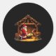 Kneeling Santa Claus & Baby Jesus Merry Christ Runder Aufkleber