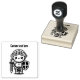 Eine hübsche Schwarz-Weiß-Illustration eines niedlichen Ritters in glänzender Rüstung. Das Design zeigt den Ritter mit einem Schwert und einem Schild mit einem Kreuz. Der Ritter trägt einen Helm mit einem Visier und hat einen freundlichen, fröhlichen Ausdruck. Diese skurrile Darstellung erfasst das Wesen mittelalterlicher Chirurgie und Abenteuer und ist somit ideal, um jedem Projekt eine Touch von Fantasie und Geschichte hinzuzufügen.