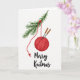 🎅🏼✨ This delightful Christmas greeting card features a charming illustration of handmade holiday cheer. A vibrant crimson ball of yarn hangs as a festive ornament, with a lush pine branch serving as its backdrop. Two knitting needles peek out from the ball of yarn, adding to the cozy, crafty vibe. The elegant phrase "Merry Knitmas" in flowing black script ties the design together, perfect for spreading holiday cheer with a touch of whimsy. 🎄🎁 Embrace the joy of the season with this heartwarming card, a perfect choice for anyone who loves the warmth of handmade gifts and creative crafting. 🧶💕