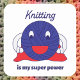 Sind Sie oder jemand, den Sie Stricker kennen? Dieser lustige Aufkleber hat ein Bild eines Kawaii-Garnkuchens und den Text "Knitting ist mein Super-Power".