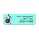 Zeichnen von Designetiketten in leuchtend türkisblauem Blau mit schwarzem Druck, rechts ausgerichtet. Ein Bild einer Garnkugel aus Stricknadeln, die durch gegossen werden, schmückt den Rand. Wählen Sie ein beliebiges Etikett für den Versand, oder eine Geschäftsadresse.