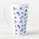White latte mug with all around blue pattern of knitting needles, balls of yarn and cats pulling yarn. The sample text reads, “I’ll stop knitting after they row”, she lies to herself. Lots of fun knitting sayings can be found online so add your favorite to the space. If you need help fitting the wording e-mail me, or use the “customize further”. Choose either the small or tall latte mugs.