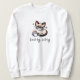 Niedliches Kätzchen mit einer Garnkugel, auf der Knitty Kitty steht