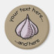 Große Skizze der Knoblauchzwiebel. Benutzerdefinierte Hintergrundfarbe. Zwei Textfelder im Kreis.