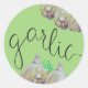 Ein klassisches Rundetikett, das die Darstellung von Knoblauch und Inschrift zeigt. Ideal für Ihre Küchen Gewürzbehälter oder Dekoration.