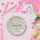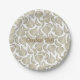 Knoblauchzwiebel mit Nelkensymbol mit Holzschliff. Benutzerdefinierte Hintergrundfarbe. Nahtloses Muster. Eigener Text.