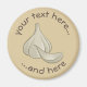Knoblauchzwiebel mit Nelkenbildern mit Holzschliff. Zwei benutzerdefinierte Textfelder im Kreis.