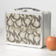 Knoblauchzwiebel mit Nelkensymbol mit Holzschliff. Benutzerdefinierte Hintergrundfarbe. Nahtloses Muster. Benutzerdefinierter Text auf beiden Seiten.