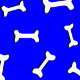 Weiße Knochen mit simuliertem Papierausschnitt auf blauem Hintergrund. Maßgeschneidertes Verpackungspapier für Hundefreunde und ihre Hunde. Alles, was gesehen wird, ist gedruckt, es wird kein tatsächliches Papierschneiden bei der Herstellung dieses Produktes verwendet.