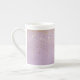 Die Tasse der Knochen-China in Weiß mit lustigen kleinen goldenen Sternen druckt auf einem Lila Hintergrund aus Lavender-Light. Mikrowellen- und spülmaschinenfest. Passen Sie dieses Objekt an oder kaufen Sie es wie geplant.