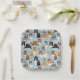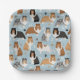 Niedliche Shetland Sheepdog Hunde sitzen und stehen und rollen mit Einweg-, Dreifarben-, Merle- und Weißmäntel mit verstreuten Hundeknochen und Pappprints.
