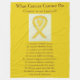 Kunst zeigt das "Gelbe Ribbon Herz", um Unterstützung für Knochenkrebs zu zeigen. Die Kunst zeigt ein gelbes Bewusstseinsband, das ein Herz umgibt, und das Gedicht "Was Krebs nicht tun kann" ist um es herum gedruckt worden. Die Gedichtworte sagen: "Was Krebs nicht tun kann, Krebs ist so begrenzt... Es kann die Liebe nicht verkrüppeln. Es kann die Hoffnung nicht zerschmettern. Sie kann den Glauben nicht korrodieren. Es kann den Frieden nicht zerstören. Es kann Freundschaft nicht töten. Es kann Erinnerungen nicht unterdrücken. Es kann den Mut nicht zum Schweigen bringen. Es kann nicht in das Soul eindringen. Es kann nicht ewiges Leben stehlen. Es kann den Geist nicht besiegen. -Autor unbekannt" Machen Sie individuelle Vlies für sich selbst oder als Geschenk für einen geliebten Menschen. Fügen Sie Ihre eigenen Worte oder Bilder zu dieser weichen Chemodecke für besondere Geschenke aus dem Bewusstsein, Krebs.