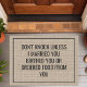 Dieses lustige Türdesign enthält die Worte "Klopfen Sie nicht, wenn ich Sie nicht Verheiratet habe, geboren oder bestellt Essen von Ihnen lustige Türmatte". Personalisieren Sie diese niedlichen rustikalen Imitate, bedecken Sie die Türmatte mit Ihrem eigenen Gruß. Die perfekte moderne Hauswärmung oder das Geschenk neuer Hausbesitzer.
