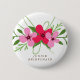 Einfacher Knopf mit Blumenentwurf u. Titel Brautparty-Mitglied. Fertigen Sie mit Ihren eigenen Farben, Text, Bildern, etc. besonders an.